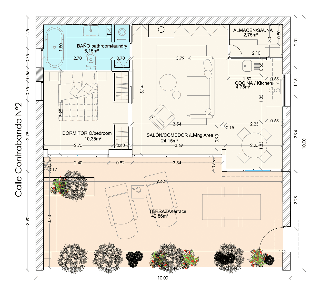 Casa Pirata has been designed to maximise the space and sea views. The indoor space includes a contemporary open plan kitchen, dining area and living area, together with a spacious double bedroom.